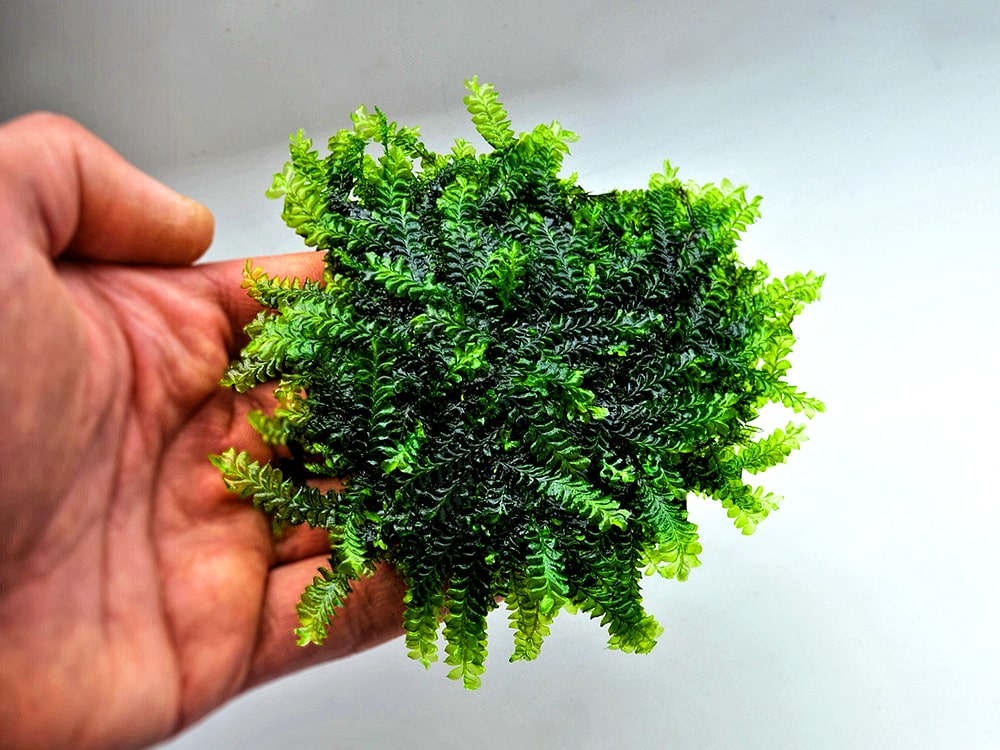 Aun así, se parece en su forma de desarrollarse y extenderse al Christmas Moss. Crece más rápido todavía que este y muchas personas lo prefieren precisamente por esto: porque crece rápido y apenas hay que hacer nada, ni engancharlo o coserlo a algún sitio. Es, sin embargo, difícil que tapice alguna superficie, pues suele crecer hacia arriba.
